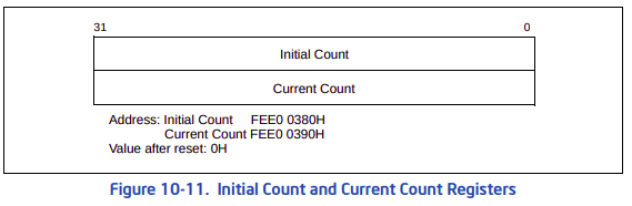 `In periodic mode`, the current-count register is automatically reloaded from the initial-count register when the count reaches 0 and a timer interrupt is generated, and the count-down is repeated. If during the count-down process the initial-count register is set, counting will restart, using the new initial-count value. The initial-count register is a read-write register; the current-count register is read only.