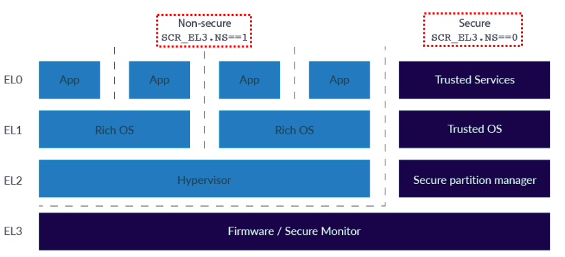 1. NS.EL1 : non-secure state & exception level 1 2. S.EL1 : secure state & exception level 1