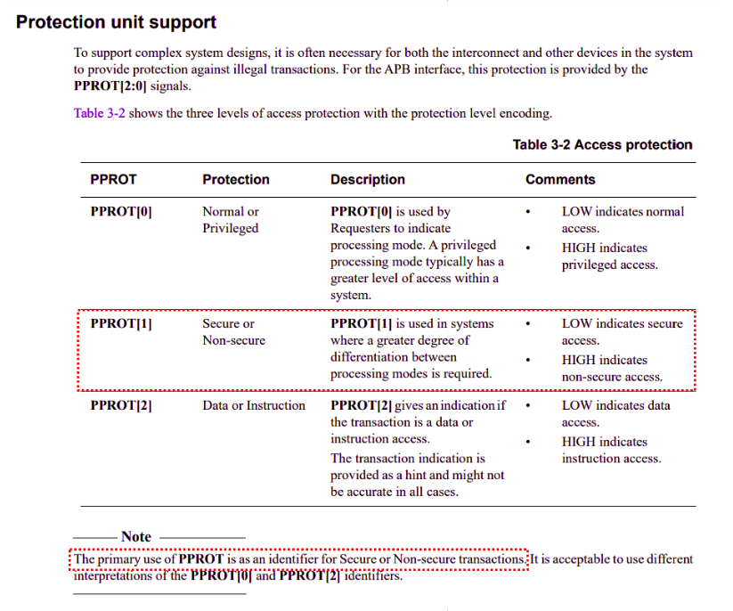 1. Secure : slave device 에게는 secure access 만 허용한다. 참고로, interconnect 는 모든 non-secure accesses 들에 대해 fault 를 생성한다.